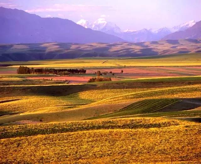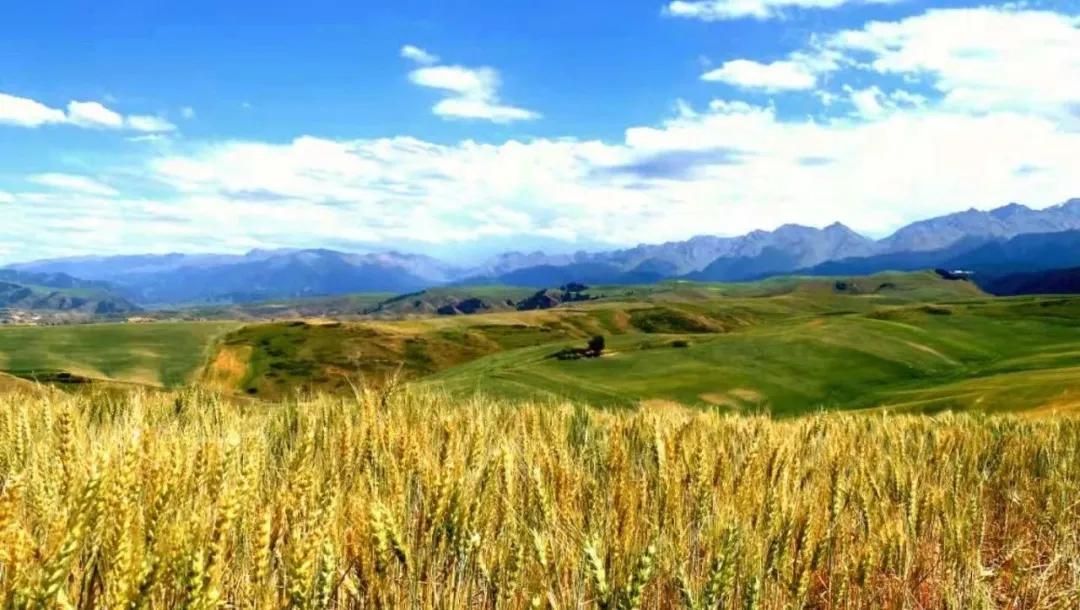 浅山处是金色麦浪和草地,中山以上是翠绿云杉和雪峰,行走在这金色的麦田边尽情呼吸新鲜的空气和花草的芳香,一种心灵被大自然净化的感觉油然而生,在如梦般的金色中,融化了几度冬眠的思想,一心沉醉在这幅美景之中。