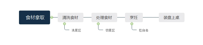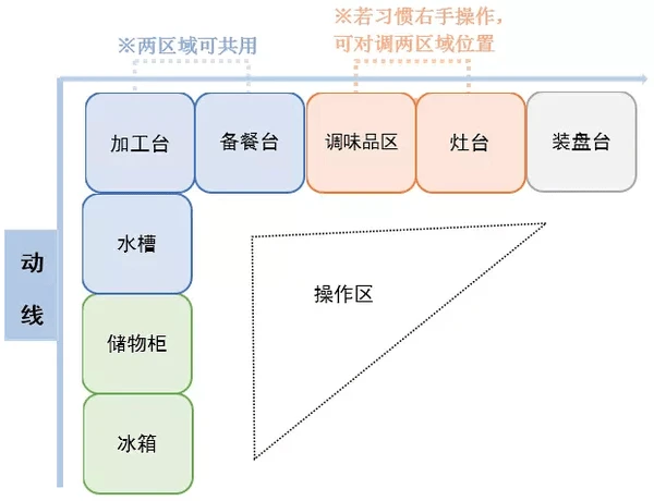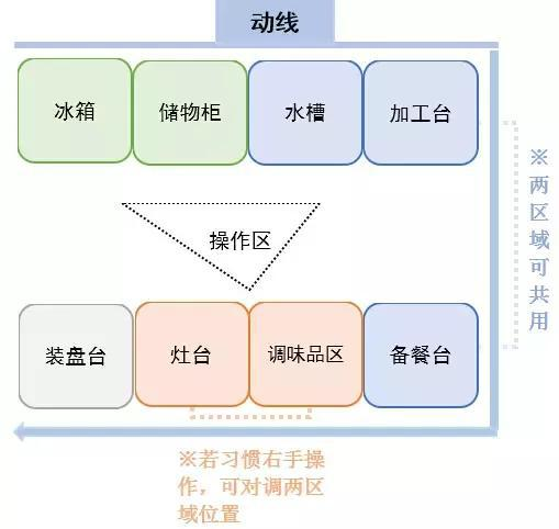 b.要提前考虑清楚厨房的操作流程,合理化进行布局,减少不必要的行走路径。