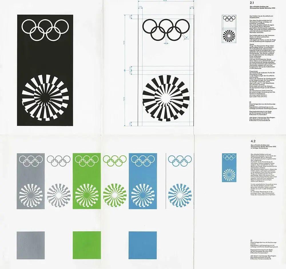 直到今天,大部分设计师认为1972年慕尼黑奥运会会徽的设计是经典之作。它由设计师奥托·艾舍(Otl Aicher,1922-1991)在一个设计大赛中击败2332件参赛作品,最终脱颖而出。它代表着一顶散发光线的皇冠,这一设计象征着慕尼黑奥运会的精神——光明、纯洁、慷慨。该精神通过「光芒四射的慕尼黑」来表达。