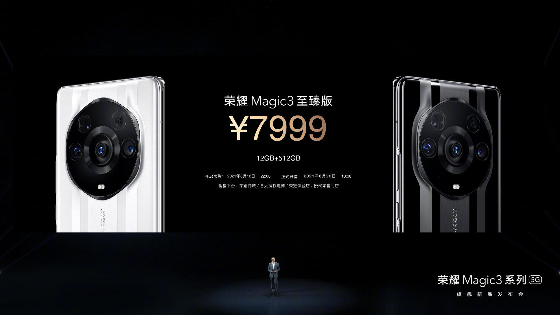 荣耀Magic3 至臻版:12GB+512GB:7999元