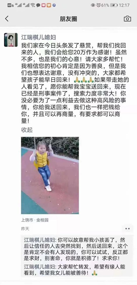 相信在江西很多人的朋友圈里,都曾被一则德兴5岁女孩的寻人启事刷屏了。这起失踪案件牵动着数亿人的心,孩子失踪的日子,对于其父母来说,分分秒秒更是煎熬。