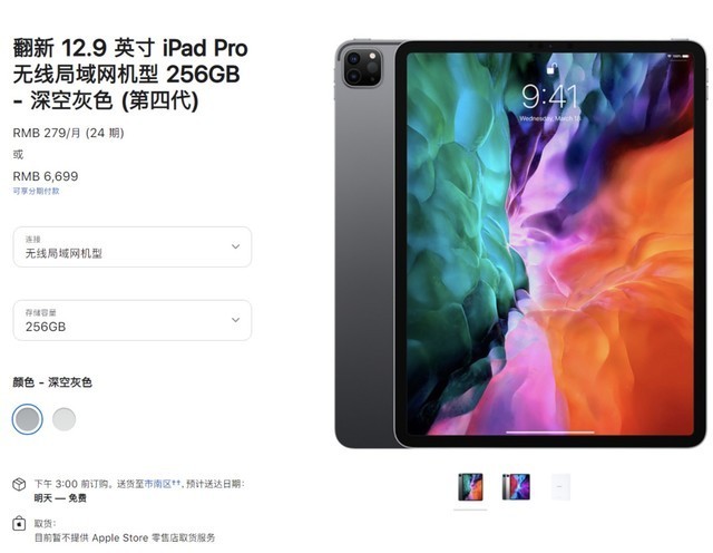 中关村在线消息:目前苹果2020款 12.9 英寸 iPadPro 翻新版本已经上架苹果中国官网商店,256GB 版本售价 6699 元。