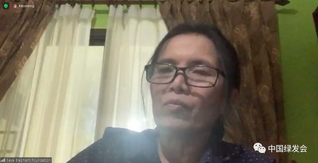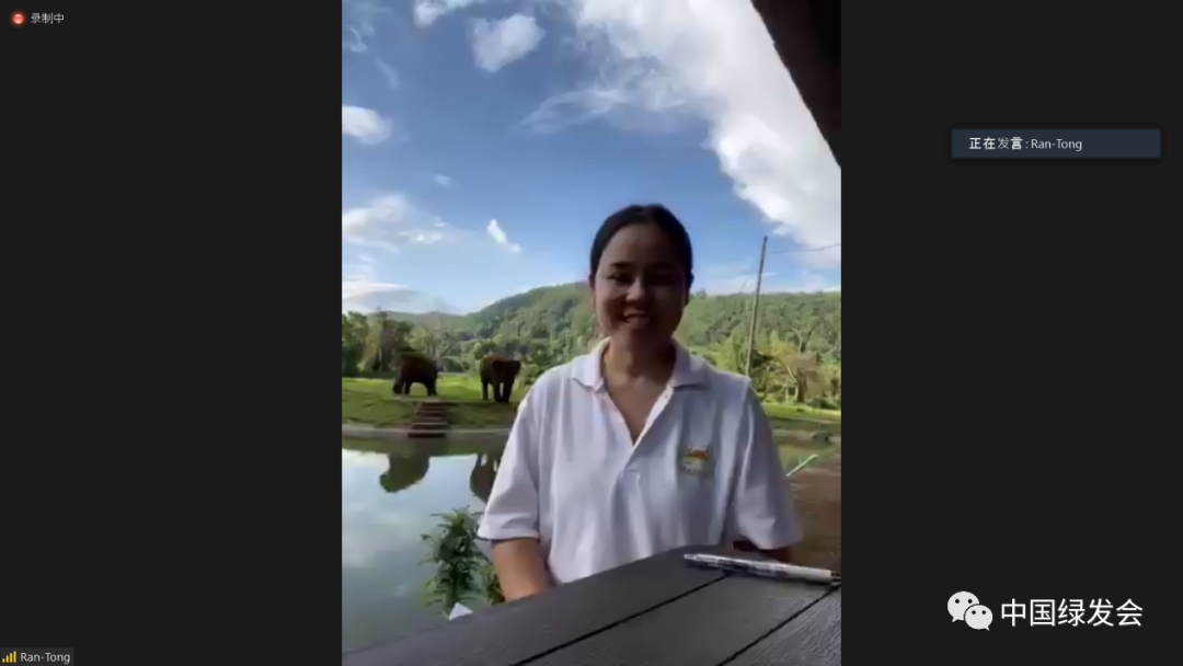 泰国Ran-Tong大象保护中心表示很荣幸受到邀请,能在这里介绍泰国大象的现状。他们把泰国大象分为两类,一是野生大象,一是救助性的大象。目前救助性大象的情况不容乐观,一个象夫只能照顾一头大象,无论是人力、资金、食物等都很不足。在新冠疫情的长期影响下,两类大象面临的共同问题是食物链的断裂。未来疫情走势尚不明确,但相信所有热爱大象的人士,都会很努力与大象共同度过难关。借此机会也感谢所有帮助过他们的人,感谢中国绿发会给他们的多方面援助。