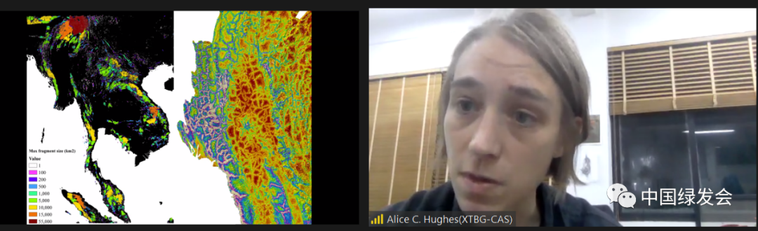 她介绍了西双版纳另外一群不太受人关注的大象近期的南迁现象。生物多样性的保护需要全球各地的共同努力,而不是某一个国家一个地区一己之力可以做到的。目前大象栖息地碎片化情况很严重,而中国的亚洲象虽然种群数量得以提升,但它们的栖息地数量却在减少,东南亚其他国家的情况也不容乐观。如何减少人象彼此间的负面影响是人类要思考的问题。人类需要一个与生态环境共存、可持续发展的方案,否则迎接我们的只有灭亡。在西双版纳新近推行的生态走廊,连接了碎片化的大象栖息地,可以有效减少人象负面互动,不失为一个好办法。而在这些项目中,政府的作用非常重要。此外,远程遥感对于野外大象及其他物种的信息收集也相对高效,应该在今后的科研工作中被广泛应用。她提醒大家注意,在孟加拉国,有一条相对完整的大象迁移走廊,但由于这条走廊与难民居住地有所重叠,这造成了不少人象冲突,希望更多人来一起探究人象共存的方法。最后她说,并不是把物种聚集起来就是对它们的保护,要真正了解大象或其他动物到底需要什么,提供给它们切实的帮助。