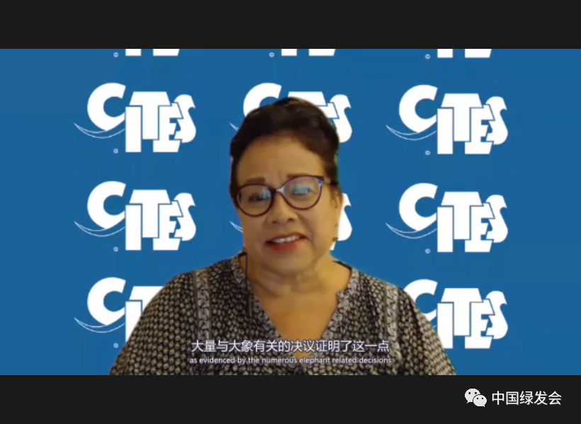 Amy女士做主旨发言,提到了近期中国的亚洲象的北迁,并指出亚洲象已在IUCN的红色名录中达到濒危级别。此外,非洲象的情况也不容乐观,尤其是非洲丛林象,在名录中为极危等级。她说大象是可爱又深情的动物,更是帮助人类和自然的固碳、播种小能手。她也介绍了联合国《保护野生动物迁徙物种公约》这一全球唯一保护迁徙动物的公约。她提出要加强与大象分布区国家的合作、以及国际上关注大象保护的基金组织联动,除了对现有对非洲象的保护,也要加大对亚洲象保护的力度。