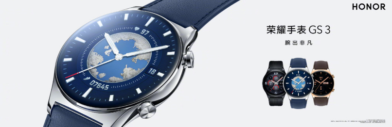 荣耀手表 GS 3 有“环球远航”、“流光经典”、“竞速先锋”三款配色,分别对应三种不同的手表风格。