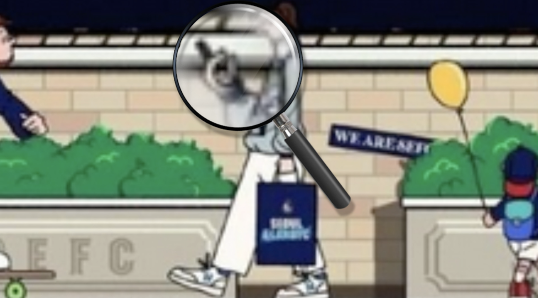 这是首尔一家足球俱乐部被指控宣扬仇男的海报,这个手势出现在……给你五秒看你有没有找到。好的,我们放大再放大,它在这里。