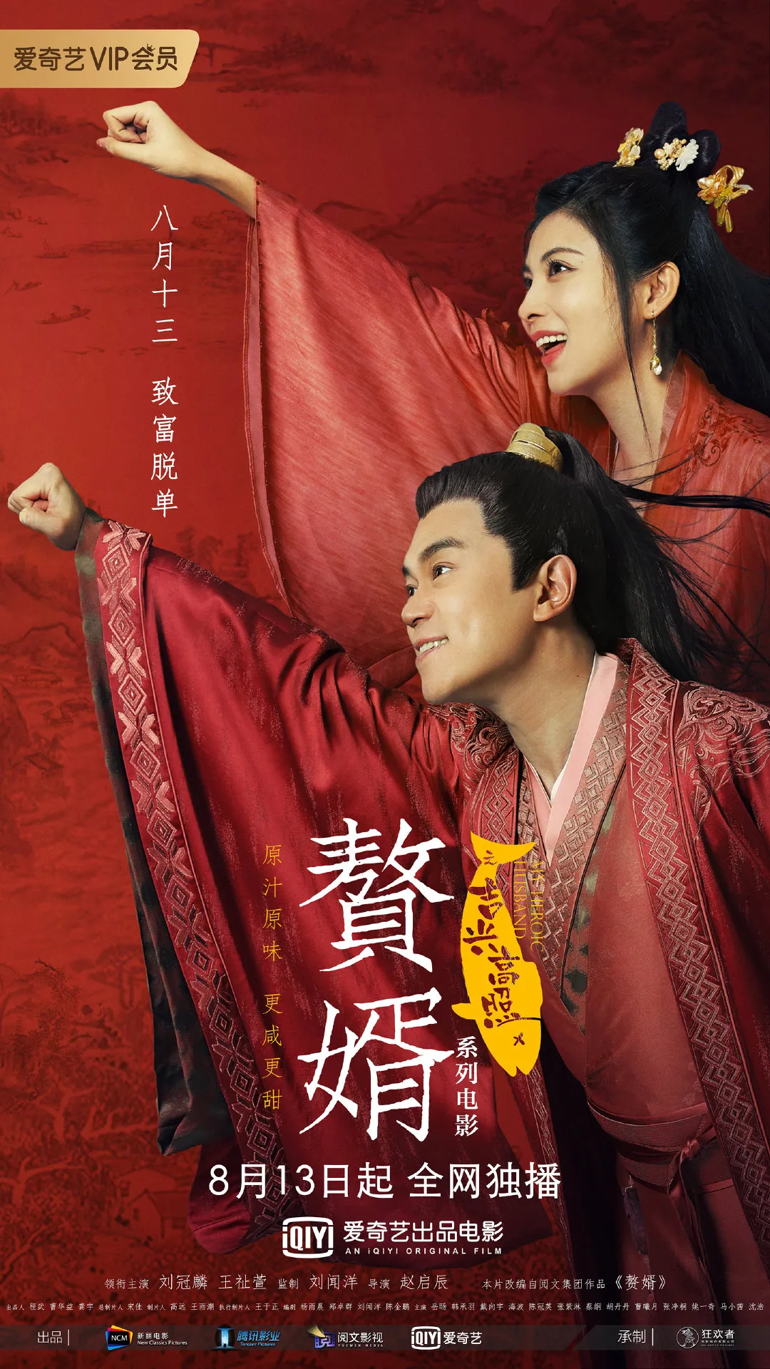 《赘婿》第二季还要等。但惊喜还是快马加鞭地赶到了。8月13日,由剧集原班人马打造的网络电影《赘婿之吉兴高照》(下简称《吉兴高照》)上线爱奇艺与观众见面了。距离《赘婿》收官,仅仅过了5个月。不可谓不快。