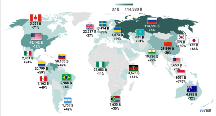 2019年9月,中国占比特币全网算力的75.53%,但最近,这一比例已经下降到46.04%,而美国的份额则扩大到16.85%。