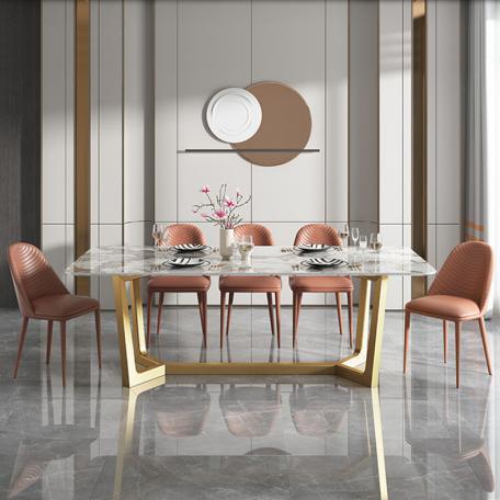 【意式岩板餐桌】,加入点点金色奢感,用一抹轻奢暖调点亮你的生活。