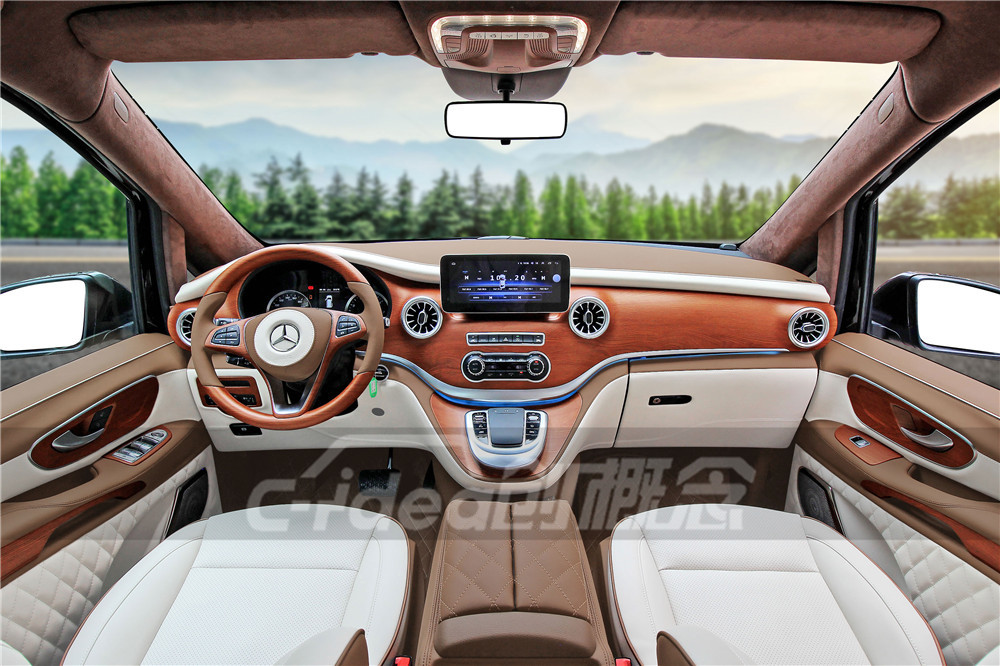 新款的内部设计,双色真皮定制,加上一体式桃木饰件改装,尽显独一无二的尊崇身份。从方向盘到门板都独具匠心,真皮上的一针一线都是纯手工制作,精致到极点。浅棕色和白色的搭配,一扫商务车原本的沉闷感,如暖阳般温暖。