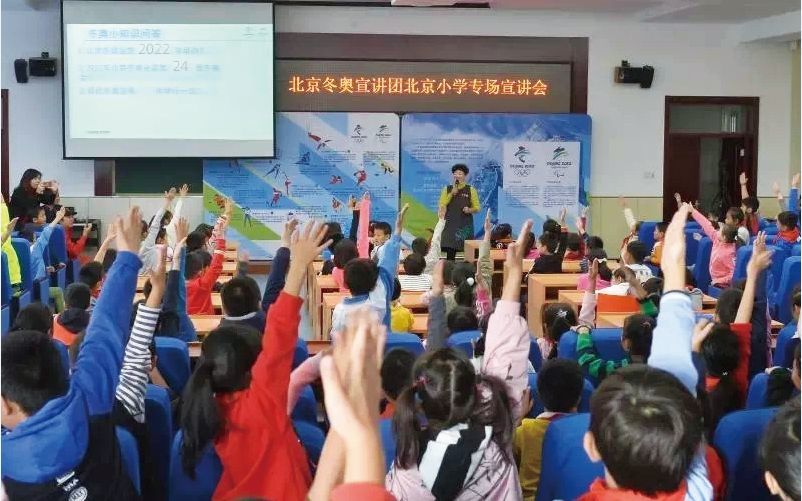 2018年10月,郝涛随北京冬奥宣讲团在北京小学进行专场宣讲。受访者供图