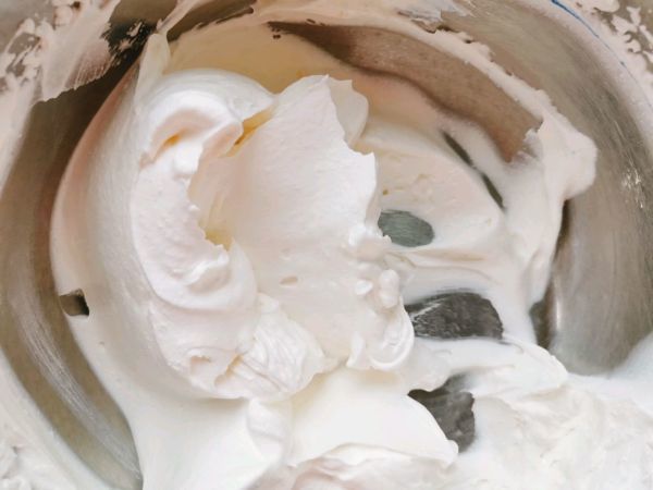 6.这个时间我们把淡奶油加糖打发,装裱花袋里备用