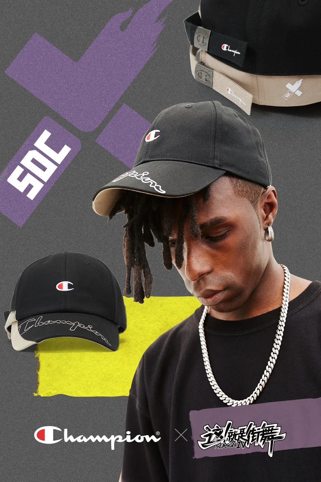 #这就是街舞#赛制大升级,国内外顶尖舞者汇集battle for peace!百年运动品牌#Champion#成为节目官方服装赞助商,助力冠军舞者全力以赴,并携手打造Champion x SDC联名棒球帽,打造街头感十足的运动造型,“这街最酷的仔”。