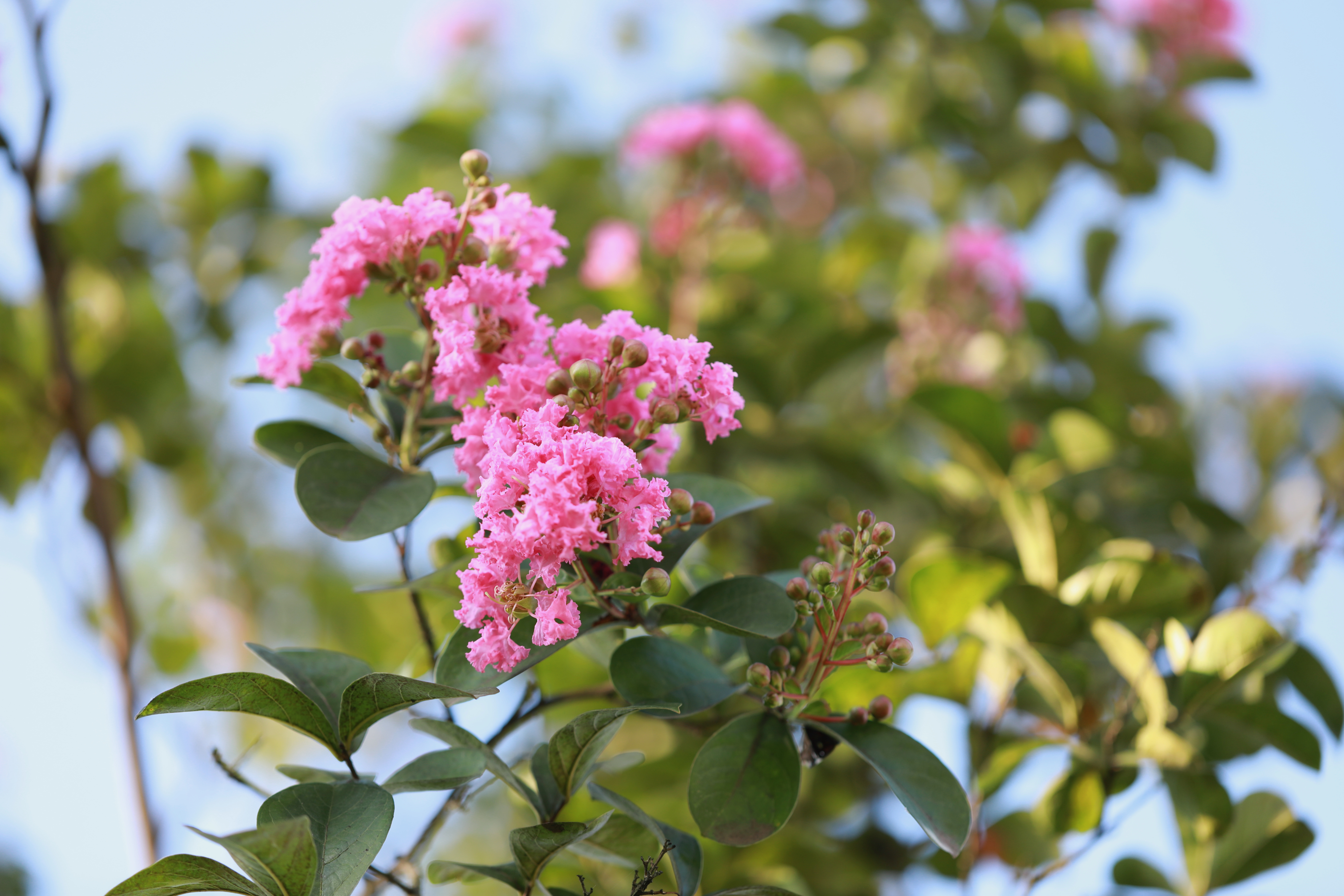 常言说“花无百日红”,但紫薇却被称作“百日红”。宋代诗人杨万里有诗赞颂:“谁道花红无百日,紫薇长放半年花。”作为一种观赏植物,紫薇一般在夏天开花,花期从6月一直到9月。一棵紫薇树上,从第一朵花开到最后一朵花谢,往往经历一百天左右的时间,“百日红”由此得名。紫薇花期长,缘于其适应各类生长条件,从南到北、海拔从几十米到2000米的国内许多地区,都生长着紫薇花。