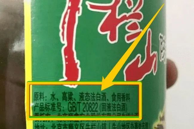 配料表里如果出现了“液态法白酒”、“固液法白酒”、“食用酒精”、“香料香精”等词语,就可以认为是酒精勾兑酒了。这些词不一定都会出现在配料表里,但是有一个词一定会出现,那就是“香料香精”。