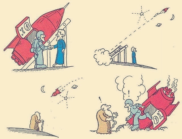 如果你还没有体会这问题的诡异之处,我换一个说法:一艘大飞船高速飞离地球,一段时间后,又从飞船上向地球高速发射一艘小飞船,这时,究竟是大飞船的运动速度更快还是小飞船的运动速度更快?以地球为参考系,答案是显而易见的,小飞船由于向地球发射,相当于在大飞船的运动速度上减速了,所以它的速度显然更慢,但问题是,它是从大飞船上发射的,它相对于大飞船是高速运动,而我们一直在讨论相对论效应,现在问题来了,大飞船和小飞船谁的时间更慢?