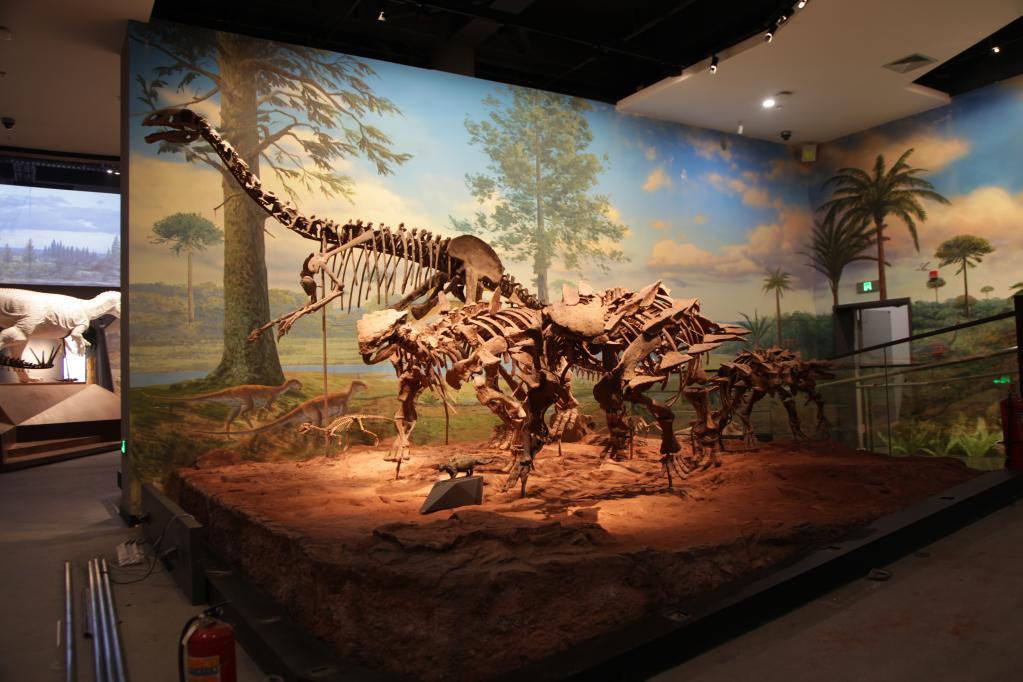 (浙江自然博物院安吉馆展示的恐龙骨架化石。郑文杰供图)