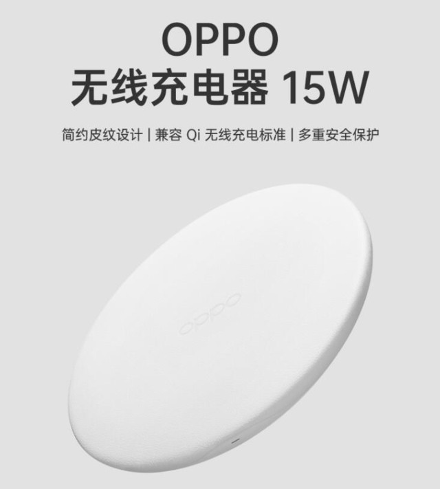 OPPO 无线充电器 15W近日正式发售,售价99元。其采用白色皮纹设计,兼容 Qi 无线充电协议,最大可进行 15W 无线充电。