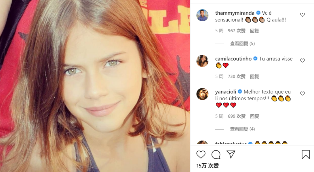 贴文随即受到很大的回响,得到15万的赞好以及接近1万4千个回复。当中有不少名人网红的留言回复,大多称赞Fernanda 的做法。:「祝贺这个决定」、「勇敢!恭喜!」、「你就是榜样,谢谢你的关心并和我们分享这么多的智慧!」