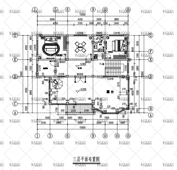 开间尺寸:15米