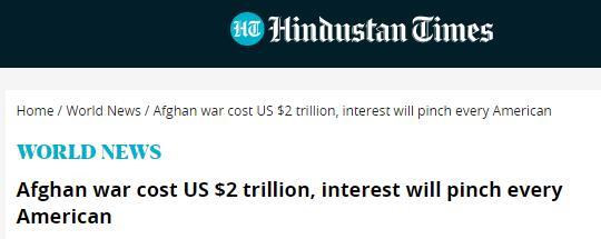 据《印度斯坦时报》17日报道,自2001年“9·11”事件以来,美军在阿富汗驻扎20年花费数万亿美元,但在塔利班的“闪电战”面前,所有这一切都化为乌有。