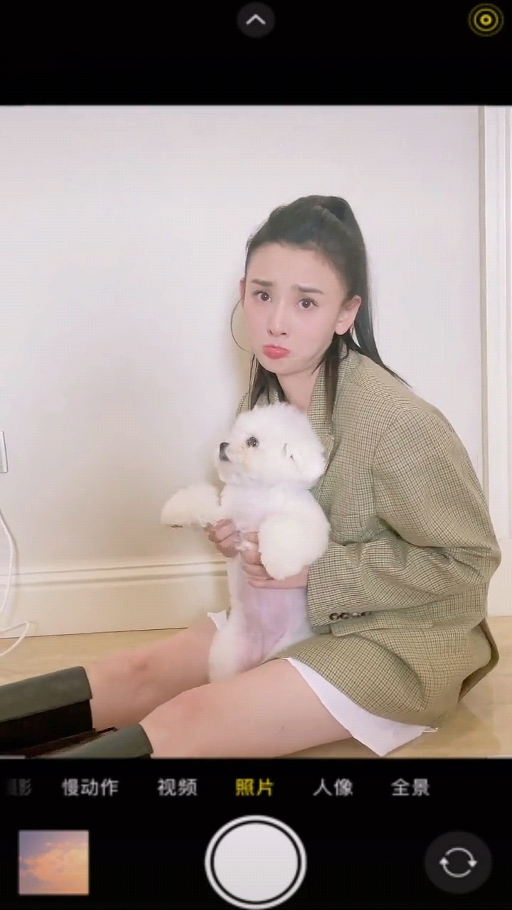 照片中,宋祖儿穿着格子西装外套,怀里抱着白色小狗,对着镜头模仿小时候的自己,做出了委屈巴巴的表情。小时候的宋祖儿穿着橙色衣服,带着小画家帽,怀里抱着白色狗狗,面对镜头撅起了嘴巴,憨态可掬,十分可爱。