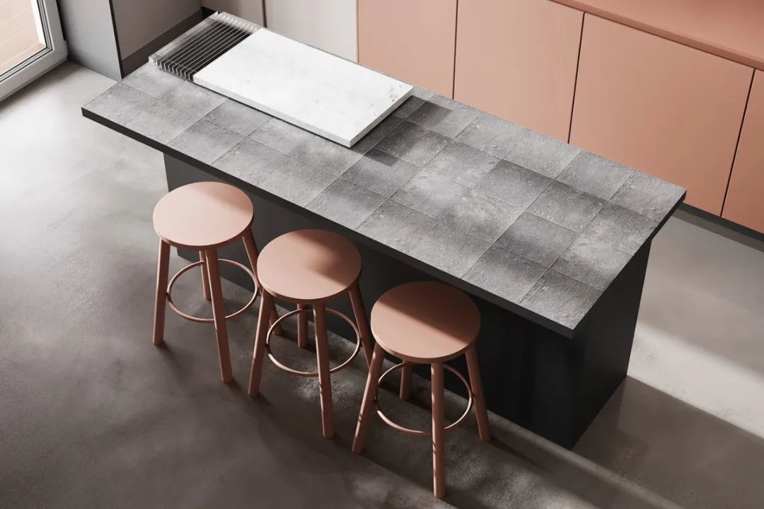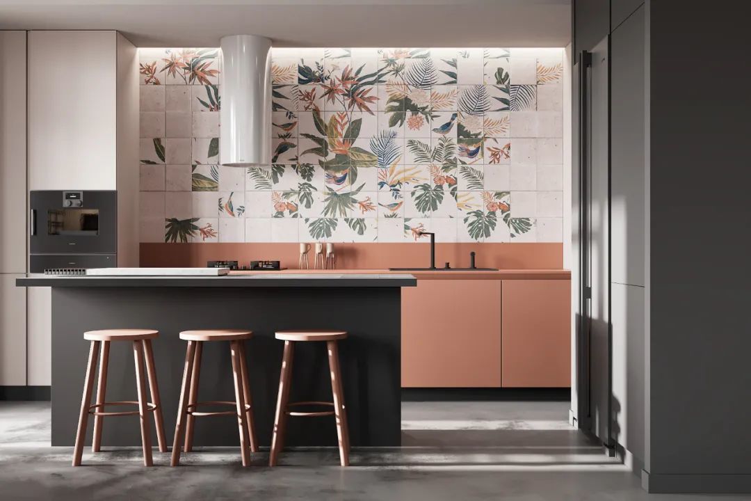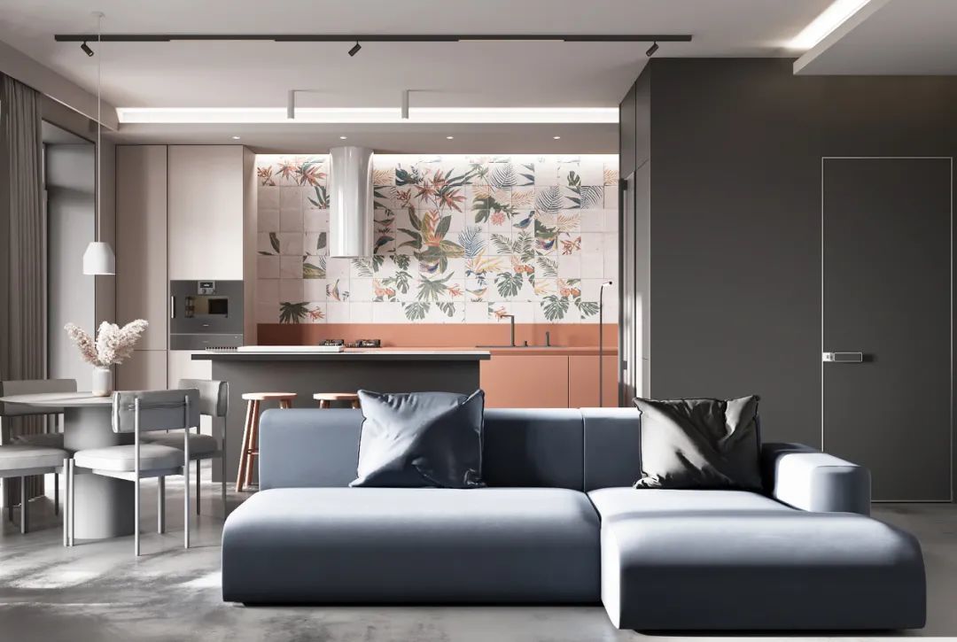舒适的配色是一大亮点,枫叶橙、高级灰的组合,温柔而有力量,铺设出触感轻柔细腻的橱柜,当阳光洒入,窗明几净,更富亲和力与温度感。