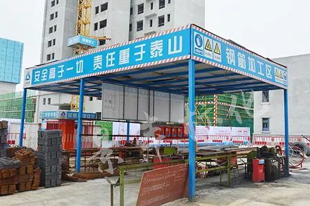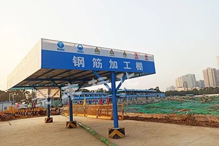 施工钢筋加工棚是在木工加工场地、钢筋加工场地等上方有可能掉落物件或处于起重机调杆回转范围之内,搭设的双层防护棚,用于保护施工人员。钢筋加工棚主要结构用钢管作为支骨架,上面覆盖竹串片或者竹笆板或者废模板作为防砸,或者保护防护棚内经过的诸如高压线之类的东西。一般的双层防护是为了加大安全系数。