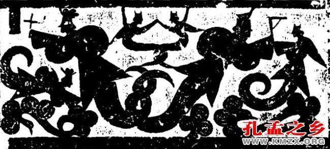 在沂南北寨画像石中也出现了图像与榜题的错杂,体现出了石匠文化水平不高。北寨村画像石雕刻精美、技法娴熟,中室北壁东段上层为两位武士伸手去拿高柄豆上的桃子,表现的应为二桃杀三士的历史故事,可榜题却刻“令相如”和“孟犇”。此榜题与画像内容毫无关系,孟犇为秦武王时期的人物,蔺相如为秦昭王时期人物,蔺相如使秦时,孟犇已死,二人无会面可能,可见石匠的历史知识和文化水平不是很高。