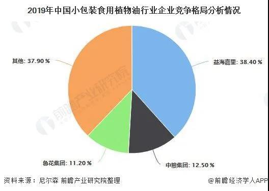 一方面,根据前瞻产业研究院发布的数据,2019年,在小包装食用油领域,益海嘉里(金龙鱼、胡姬花、香满园等)以38.4%的市场份额占据绝对优势地位,其次是中粮集团和鲁花集团,其市场份额分别为12.5%和11.2%。算上紧随其后的多力等品牌,目前国内小包装食用油市场基本已被瓜分殆尽。