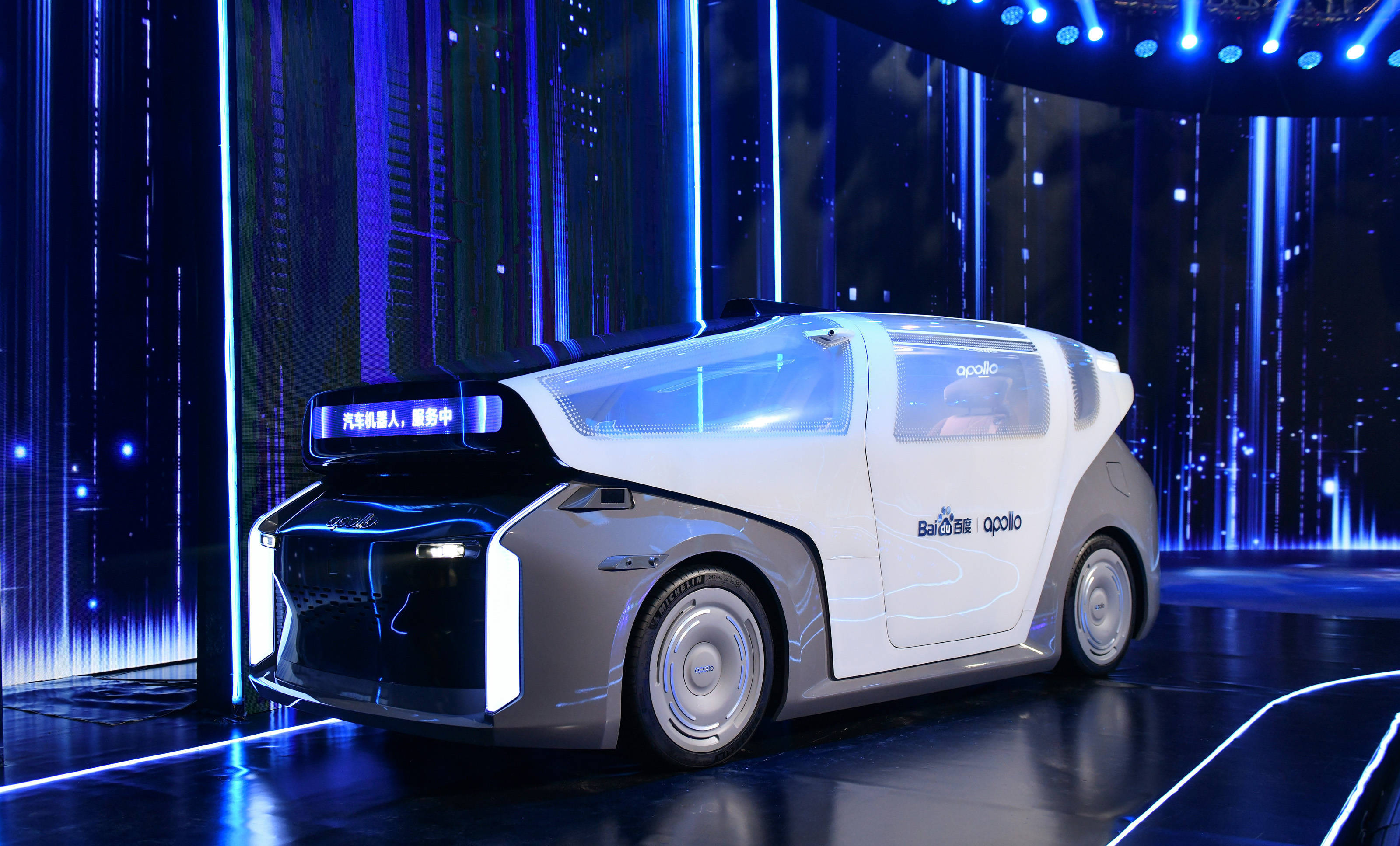 新玩法1:让人工智能彻底改变出行产业。在当天的世界大会现场,百度发布了属于自己的“变形金刚汽车人”,这就是汽车机器人,车内不设方向盘、踏板,配置有超大曲面屏、智能控制台、变光玻璃、零重力座椅等智能化设备。在众人感叹汽车人先进技术的同时,人工智能的应用也同步到了,百度还推出了无人车出行服务平台“萝卜快跑”,该平台是基于此前推出的无人出租车平台Apollo Go的升级版。李彦宏称,百度计划3年之内在30个城市推行萝卜快跑的服务。