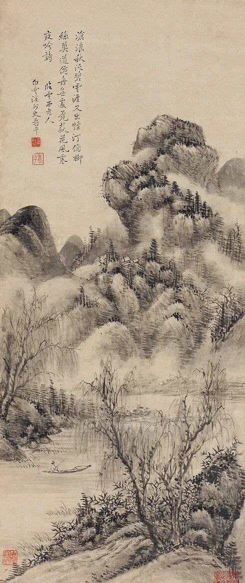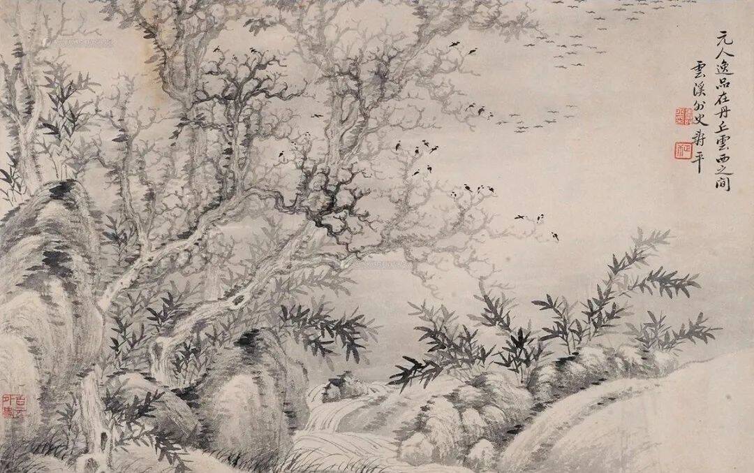 南田之山水遗世独立,别具风格。连黄宾虹都说:“南田山水浸淫宋元诸家,得其精蕴,每于荒率中见秀润之致,逸韵天成,非石谷所能及。”