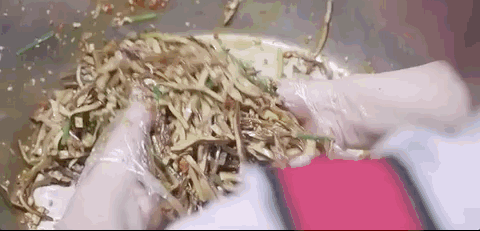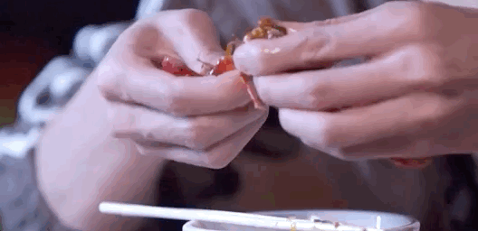 小龙虾一定要被活生生扯死,扯掉虾头虾线扔进篮子里还在动弹,就是这么新鲜。铁锅宽油烧熟,龙虾下锅,虾肉瞬间收缩,就成了日后惊艳牙齿的Q弹。