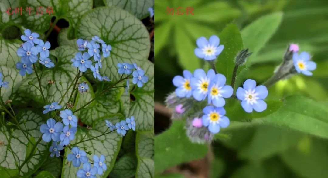 上面是心叶牛舌草和勿忘我的区别