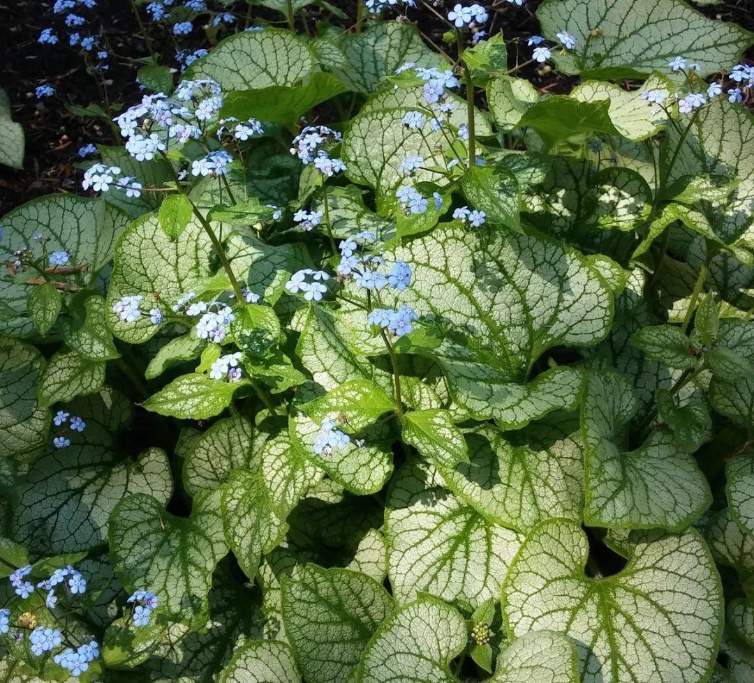心叶牛舌草(西伯利亚牛舌草 Brunnera Macrophylla)的花朵特像勿忘草,是很小众的草本植物,两者都是紫草科的植物。