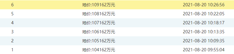 10:09 竞拍一轮,进入伦教楼面价前十;此后节奏相对缓慢,每隔4-5分钟为一个报价周期。