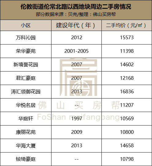 而新房包括广佛保利城、时代印记凯蓝锦纶华庭等,均价在1.75-2.4万/㎡。