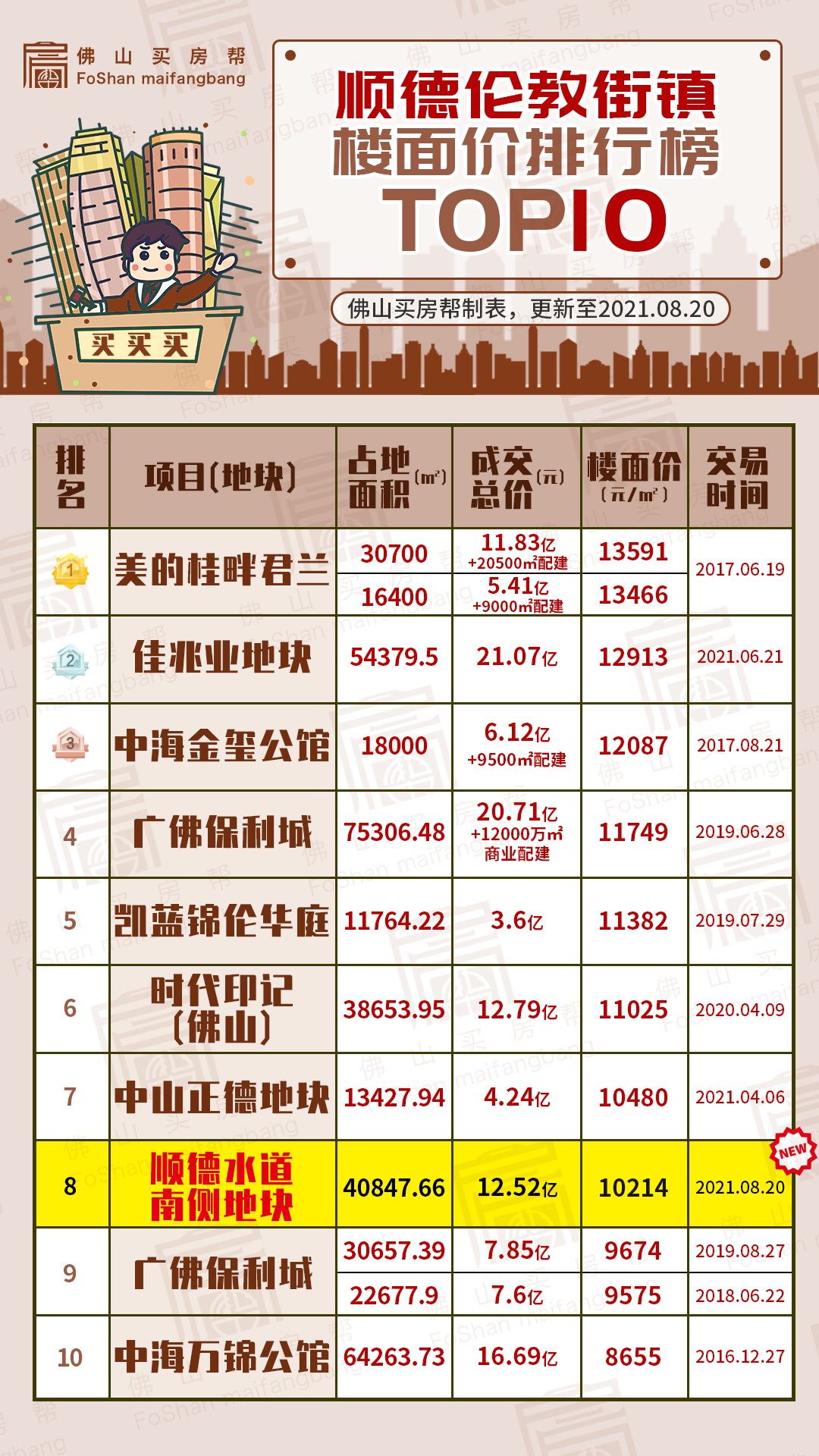 11:09 历经一个多小时拉锯战,楼面价进入伦教前8——9724元/㎡。