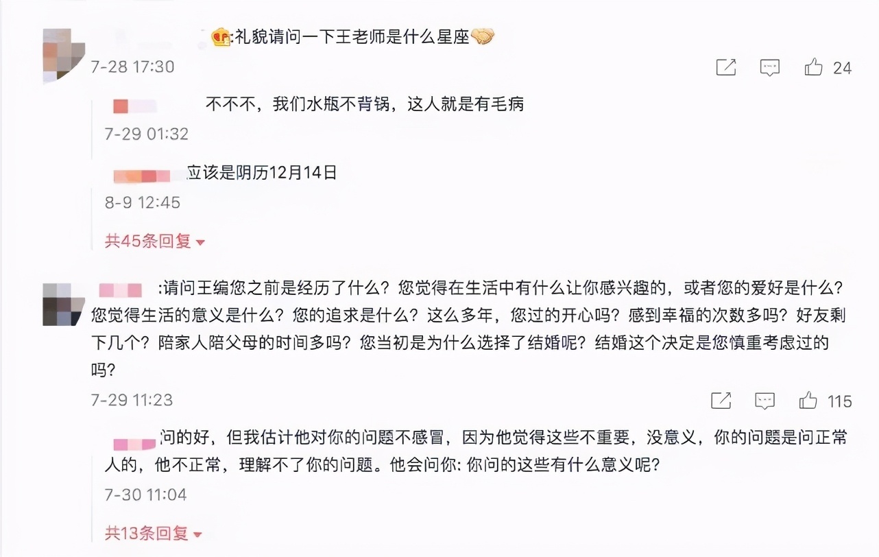 节目播出三期,老王(王秋雨)的微博下谩骂声一片,他的直男思维以及大男子主义引起了女性观众的不满,这无关乎女权,而是任何女性都无法忍受自己的丈夫拥有这样的思想。