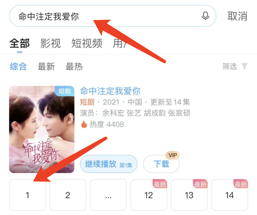 搜索片名《命中注定我爱你》直接追剧!