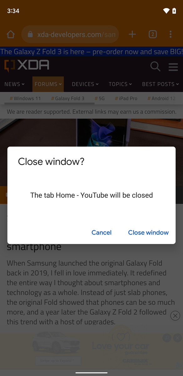 ▲ 在安卓 12 中关闭谷歌浏览器的窗口