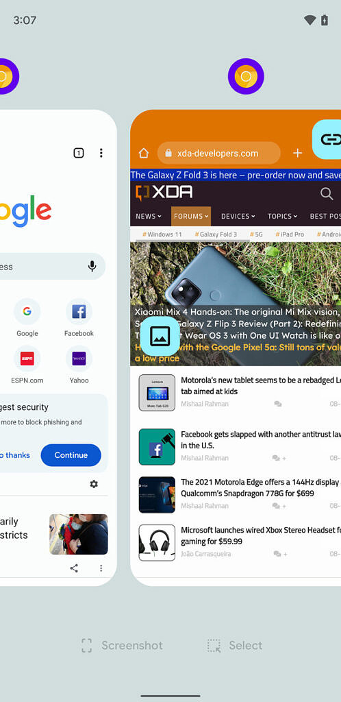 有了多实例支持,安卓 12 的最近应用界面中可以出现一个以上的 Chrome 窗口。