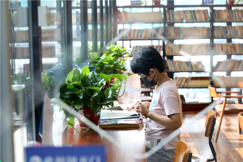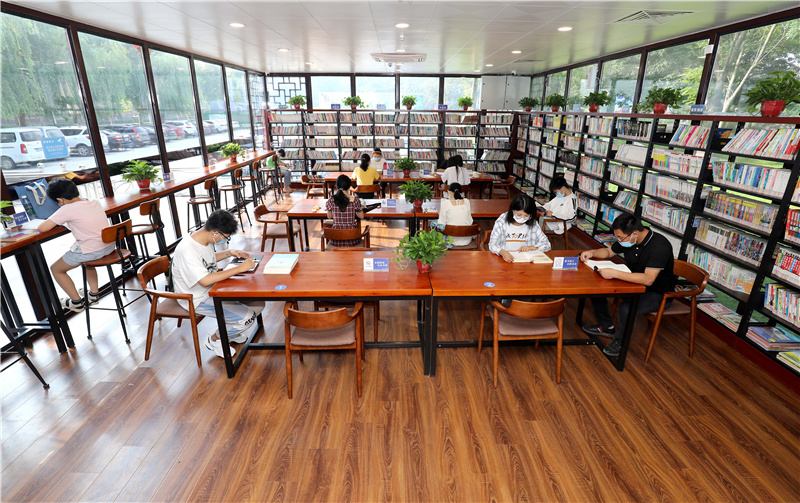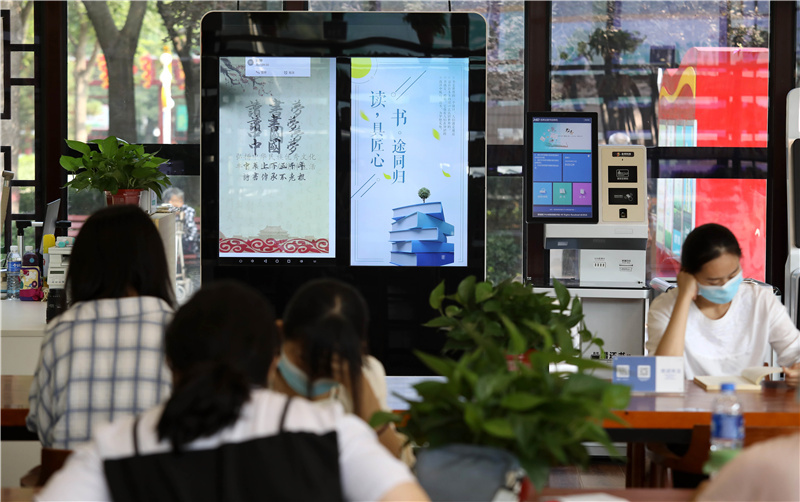 8月21日,读者在河北省石家庄市藁城区人民广场“24小时智慧图书馆”内阅读。
