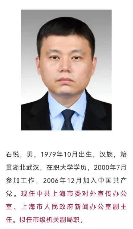 石悦,现任上海市人民政府研究室副主任。