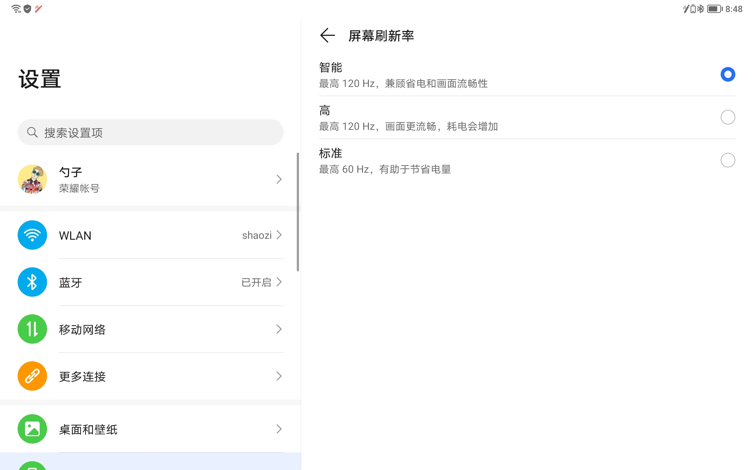 荣耀平板V7 Pro屏幕支持DCI-P3广色域,500nit高亮度加持下,即使户外光线较强也能很好显示屏幕内容。1500:1高对比度,支持阳光屏和夜光屏,能够对用户的眼睛进行最好的保护。最最最关键的是荣耀平板V7 Pro屏幕支持120Hz刷新率,你敢信平板电脑高刷也变成了标配嘛?