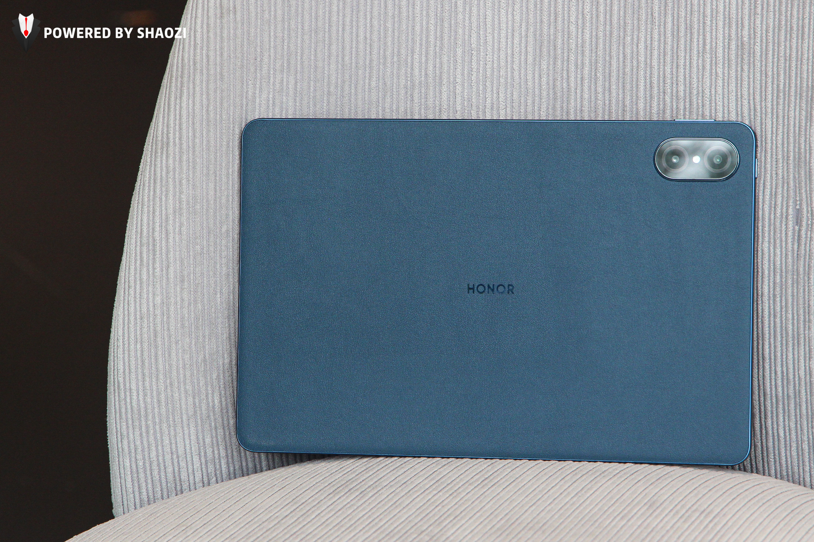 这次荣耀平板V7 Pro一共有晨晖金、曙光蓝、钛空银三配色。其中晨晖金和曙光蓝配色版本使用了皮革材质设计,小牛皮纹理质感带来非常不错的亲肤触感。同时从整体气质上来说,也会让荣耀平板V7 Pro的高级感大大提升。