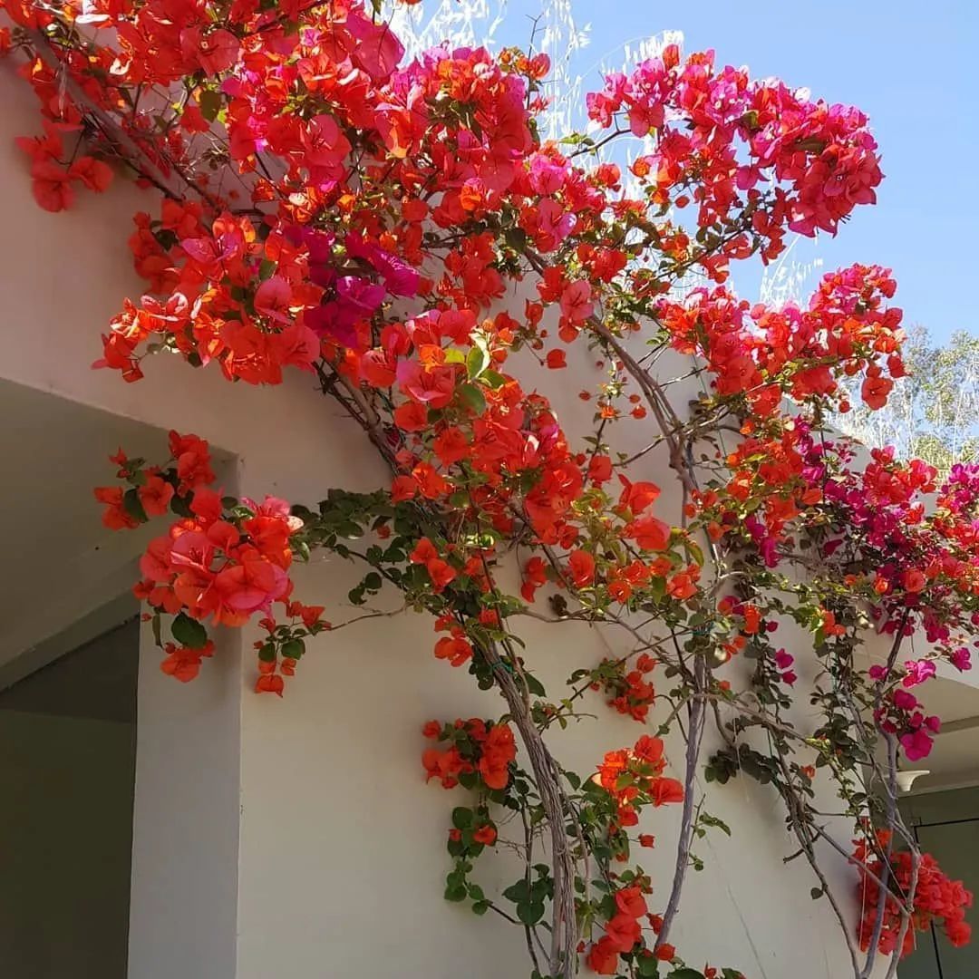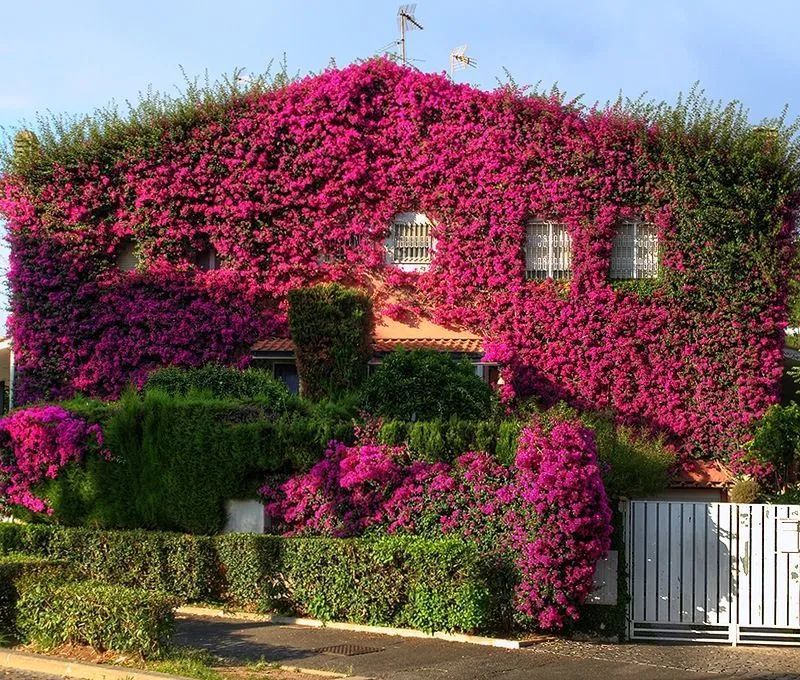 在北方有霜冻的地方,三角梅一般就会养成室内盆栽,在冬季寒冷的时候肯定要在室内越冬,但是如果是在广东、广西和福建等地,三角梅也可以长得特别疯狂,可以爬到七八米高,养在阳台上,经过适当的修剪也可以让它爬满整个阳台,基本上可以保持一年四季不断开花,基本都是开一批花,长一批枝叶,再开一批花。