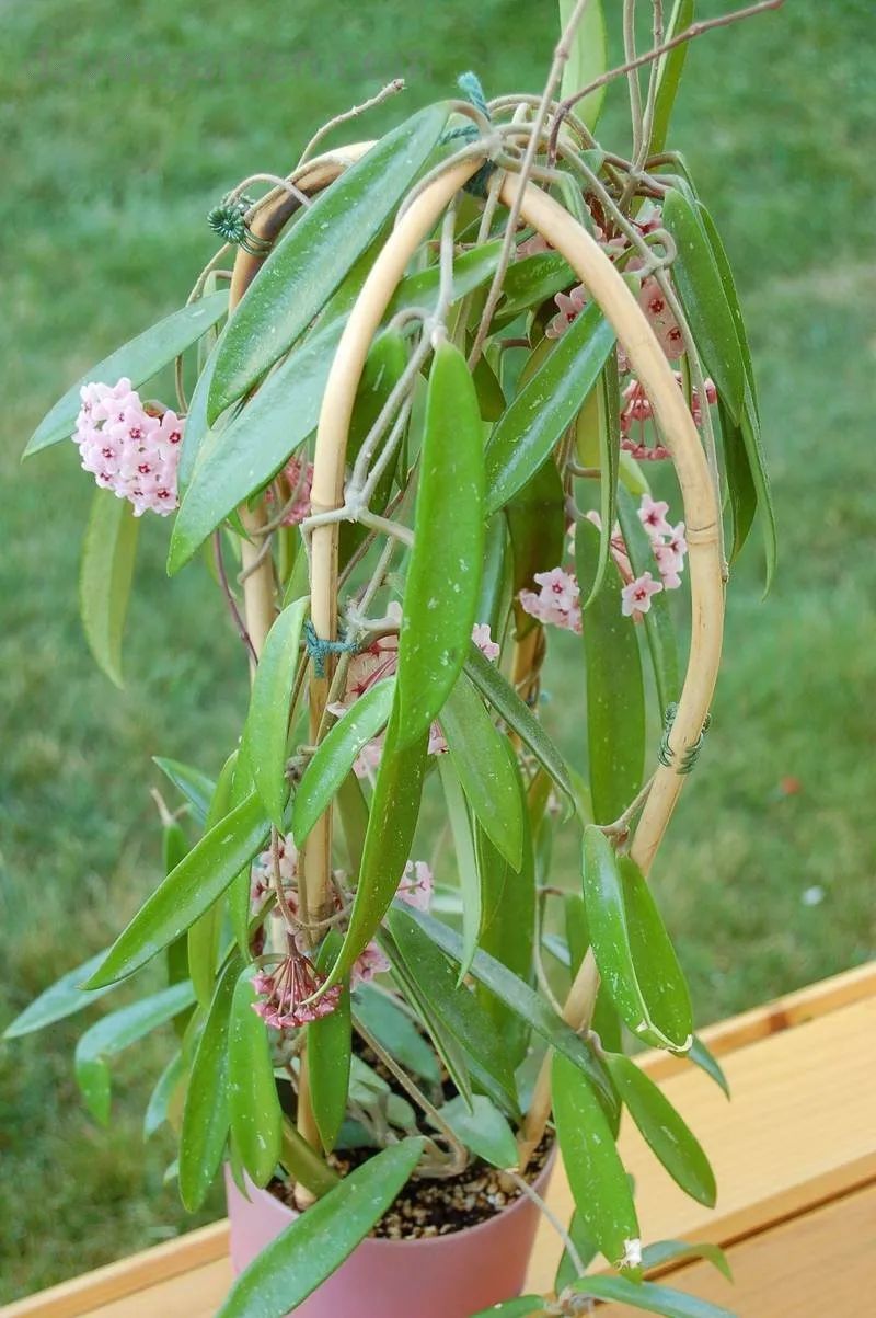 球兰养成室内爬藤植物后,要注意在花盆中搭设支架,最好是买一些株龄较大的品种,买回家可尽早开花。可以保证每年持续有花的观赏,每次开完花不要将整个花梗剪掉,因为它的花梗是可以再次开花的。