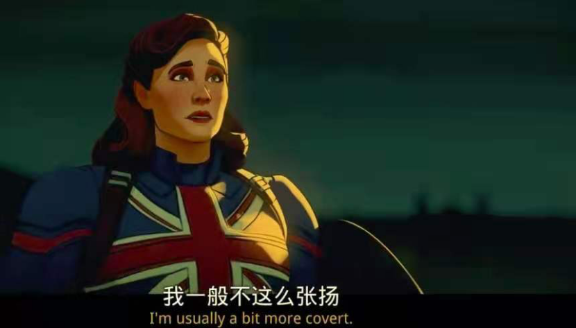 原本生猛的男性角色变成女性,这个噱头和看点非常大,后面紧随着的一段打戏镜头场面也很燃。不过卡特化身超级战士之后,她的战袍变成了英国国旗,或许是为了和美国队长区分,《假如…?》中的美国队长摇身一变成为了英国队长。